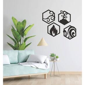 Quadro Decorativo Preto Mdf Quatro Elementos 40X20Cm