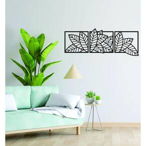 Quadro Decorativo Preto Mdf Trio Folhas Linear 40X20Cm