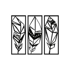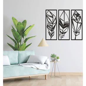 Quadro Decorativo Preto Mdf Trio Folhas Maori 40X20Cm