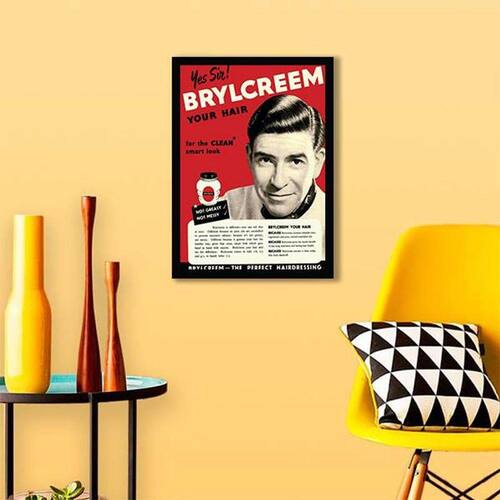 Quadro Decorativo Propaganda Pomada de Cabelo - Tamanho: A4 (20 x 30) / Acabamento: Película de acetato / Moldura: Madeira preta