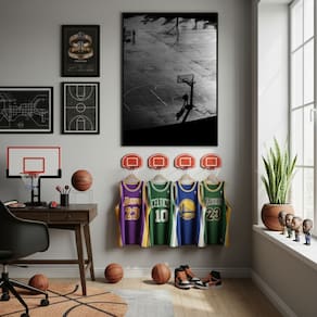 Quadro Decorativo Quadra De Basquete-70x50cm - Cor: Moldura Branca