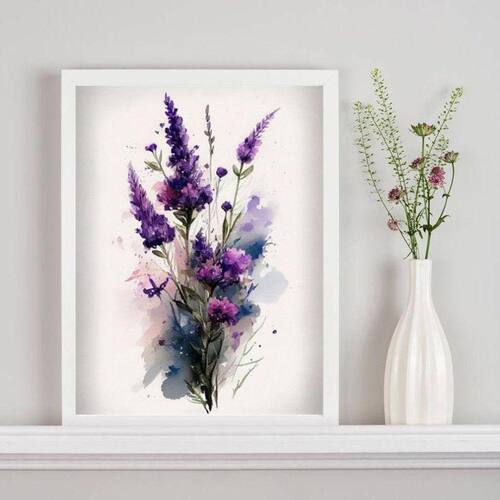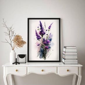 Quadro decorativo ramo de lavanda aquarela 24x18cm - com vidro Moldura: madeira branca Informações do produto tire todas as suas dúvidas no descritivo abaixo: decoração para quarto, sala, cozinha, escritório, área gourmet e muito mais. Chega de paredes vazias medidas - cada peça tem 24x18cm a5 . Material do papel - papel fotográfico brilhante de altíssima resolução acabamento - todos os quadros são acompanhados de vidro para proteção da imagem. - moldura em madeira maciça na cor preta ou branca conforme produto escolhido e pendurador . - os quadros são embalados de forma segura com plástico bolha com camada dupla de acordo com o tamanho dos quadros. Garantia - garantia de 3 meses. Meu quadro chegou. Como posso fixá-lo Você precisa apenas de um martelo e um prego, pois os quadros já vão acompanhados de penduradores. Esta é a forma mais indicada. Como posso limpar meu quadro A limpeza é feita como um móvel comum da sua casa. Apenas um pano seco ou espanador são suficientes para tal Ean: 7893120564964