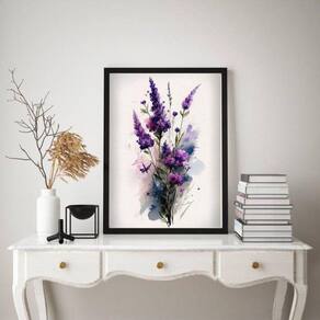 Quadro decorativo ramo de lavanda aquarela 33x24cm - com vidro Moldura: madeira preta Informações do produto tire todas as suas dúvidas no descritivo abaixo: decoração para quarto, sala, cozinha, escritório, área gourmet e muito mais. Chega de paredes vazias medidas - cada peça tem 33x24cm a4 . Material do papel - papel fotográfico brilhante de altíssima resolução acabamento - todos os quadros são acompanhados de vidro para proteção da imagem. - moldura em madeira maciça na cor preta ou branca conforme produto escolhido e pendurador . - os quadros são embalados de forma segura com plástico bolha com camada dupla de acordo com o tamanho dos quadros. Garantia - garantia de 3 meses. Meu quadro chegou. Como posso fixá-lo Você precisa apenas de um martelo e um prego, pois os quadros já vão acompanhados de penduradores. Esta é a forma mais indicada. Como posso limpar meu quadro A limpeza é feita como um móvel comum da sua casa. Apenas um pano seco ou espanador são suficientes para tal Ean: 7897382602242