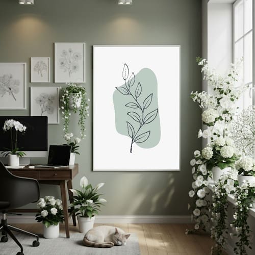 Quadro Decorativo Ramo Verde 70x50cm Mold Branca