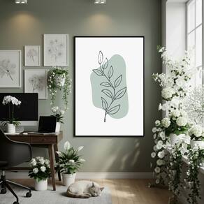 Quadro Decorativo Ramo Verde 70x50cm Mold Preta