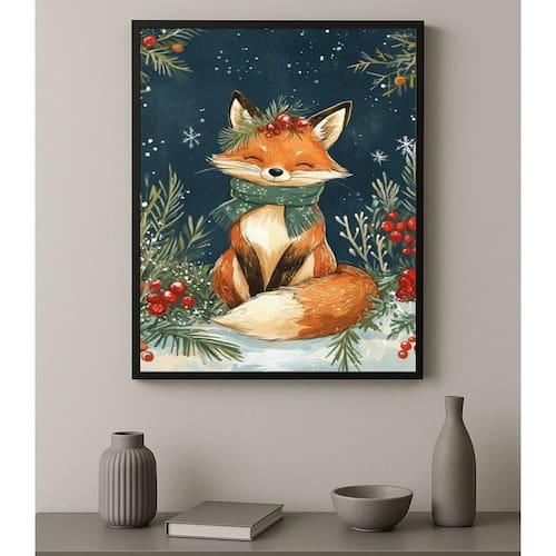 Quadro Decorativo Raposinha De Natal 33x24cm - Cor: Moldura preta