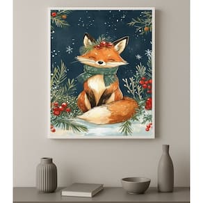 Quadro Decorativo Raposinha De Natal 33x24cm - Cor: Moldura branca