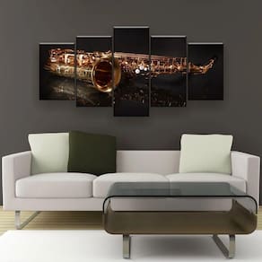 Quadro Decorativo Reflexo Saxofone 129x61 Sala Quarto