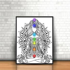 Quadro decorativo reiki chakras 33x24cm - com vidro Moldura: madeira preta Informações do produto tire todas as suas dúvidas no descritivo abaixo: decoração para quarto, sala, cozinha, escritório, área gourmet e muito mais. Chega de paredes vazias medidas - cada peça tem 33x24cm a4 . Material do papel - papel fotográfico brilhante de altíssima resolução acabamento - todos os quadros são acompanhados de vidro para proteção da imagem. - moldura em madeira maciça na cor preta e pendurador . - os quadros são embalados de forma segura com plástico bolha com camada dupla de acordo com o tamanho dos quadros. - de 3 meses. Meu quadro chegou. Como posso fixá-lo Você precisa apenas de um martelo e um prego, pois os quadros já vão acompanhados de penduradores. Esta é a forma mais indicada. Como posso limpar meu quadro A limpeza é feita como um móvel comum da sua casa. Apenas um pano seco ou espanador são suficientes para tal
