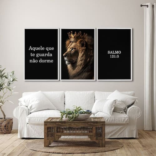 Quadro decorativo religioso aquele que te guarda, não dorme com 3 telas cm ou cm para sala, quarto, banheiro, escritório, hall de entrada, casa de praia, lavabo, camarim.
