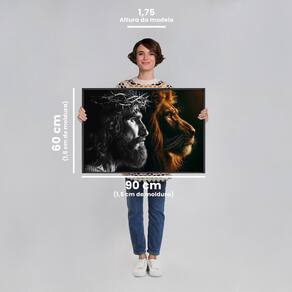 Quadro Decorativo Religioso Jesus e o Leão com 1 Tela 50x75cm ou 60x90cm de Parede para Sala, Quarto, Cozinha, Lavabo, Escritório, Hall, Recepção, Barbearia, Salão Igreja, Templo. Especificações Técnicas:Modelo: Jesus e o Leão;Material da Imagem: Papel premium fotográfico de alta qualidade;Material da Moldura: Madeira de reflorestamento revestida;Espessura da Moldura: 2,7cm de profundidade e 1,5cm frontal;Medidas: 50x75cm ou 60x90cm;Acabamento: Fita Kraft;Acompanha: Suporte de serrilha para quadros e parafusos.Transforme seu espaço com elegância e sofisticação. Não perca a oportunidade de adquirir o exclusivo Quadro Religioso Decorativo Jesus e o Leão com 1 Tela a um preço incrível! Acompanha Fixação para Parede: Sim Ambiente Principal: Cozinha Espessura: 28 mm Itens Inclusos: 1 Quadro e Suporte para Fixação Marca: ARTE PRÓPRIA Material Principal: Madeira Maciça Origem do Produto: Nacional Peso: 7 kg Possui Paspatur: Não Possui Vidro: Não Tema da Estampa: Temático Tipo de Quadro: Quadro Marca: Não Informado