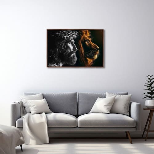 Quadro Decorativo Religioso Jesus e o Leão com 1 Tela cm ou cm de Parede para Sala Quarto Hall 60cm Marrom