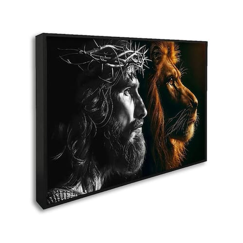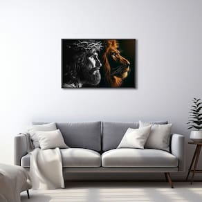 Quadro Decorativo Religioso Jesus e o Leão com 1 Tela cm ou cm de Parede para Sala Quarto Hall 60cm Preto