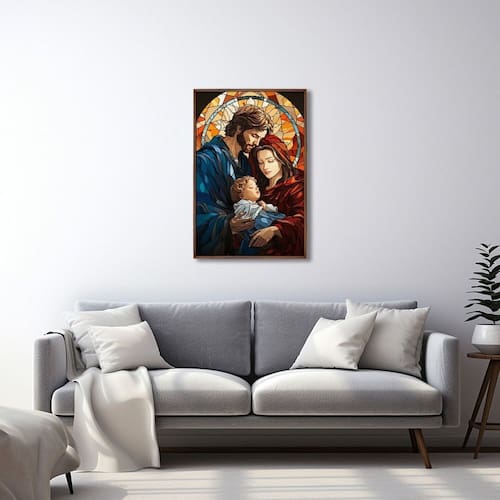 Quadro Decorativo Religioso Jesus, Maria e José com 1 Tela cm ou cm de Parede para Sala, Quarto, Cozinha, Igreja, Hall, Hall de Entrada, Igreja, Templo.Especificações Técnicas:Modelo: Jesus, Maria e José;Material da Imagem: Papel premium fotográfico de alta qualidade;Material da Moldura: Madeira de reflorestamento revestida;Espessura da Moldura: 2,7cm de profundidade e 1,5cm frontal;Medidas: cm ou cm;Acabamento: Fita Kraft;Acompanha: Suporte de serrilha para quadros e parafusos.Transforme seu espaço com elegância e sofisticação. Não perca a oportunidade de adquirir o exclusivo Quadro Religioso Jesus, Maria e José com 1 Tela a um preço incrível!