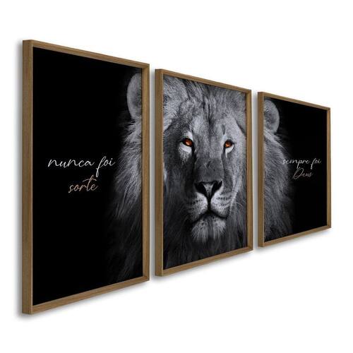 Quadro Decorativo Religioso Nunca Foi Sorte, Sempre Foi Deus Preto e Branco com 3 telas 60x90cm para Sala, Lavabo, Escritório, Quarto, Hall de Entrada.