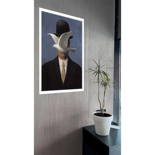 Quadro decorativo rené magritte ilusionismo - 70x50cm Cor: moldura preta Informações do produto tire todas as suas dúvidas no descritivo abaixo: decoração para quarto, sala, cozinha, escritório, área gourmet e muito mais. Chega de paredes vazias medidas - cada peça tem 70x50cm . Material do papel - papel fotográfico brilhante de altíssima resolução acabamento - todos os quadros são acompanhados de vidro para proteção da imagem. - moldura em madeira maciça na cor preta ou branca conforme produto escolhido e pendurador. - os quadros são embalados de forma segura com plástico bolha com camada dupla de acordo com o tamanho dos quadros. - de 3 meses. Meu quadro chegou. Como posso fixá-lo Você precisa apenas de um martelo e um prego, pois os quadros já vão acompanhados de penduradores. Esta é a forma mais indicada. Como posso limpar meu quadro A limpeza é feita como um móvel comum da sua casa. Apenas um pano seco ou espanador são suficientes para tal