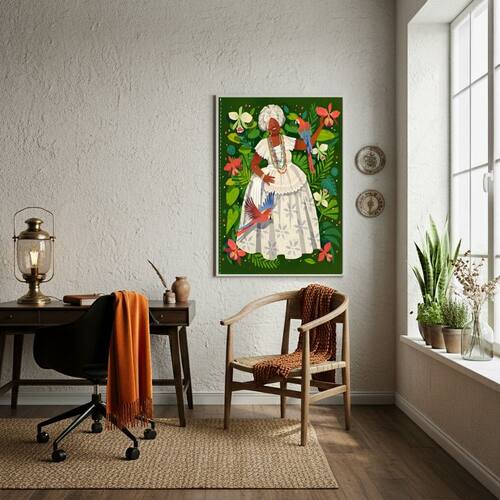 Quadro Decorativo Representação de uma Baiana - 70x50cm - Cor: Moldura Preta