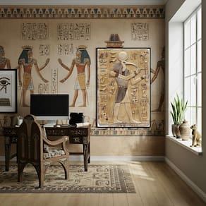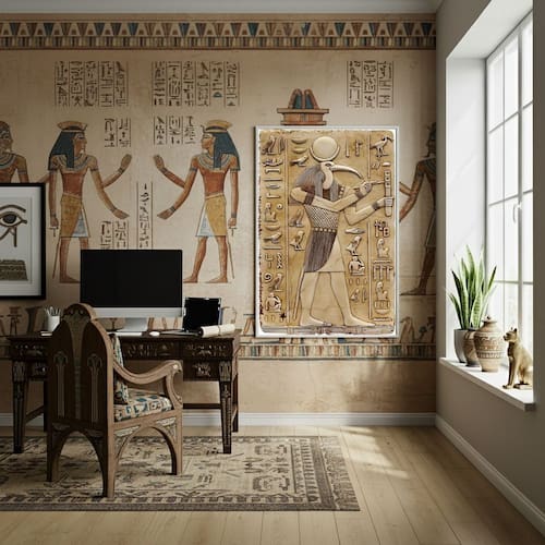 Quadro Decorativo Representação Deus Egípcio Thoth - 70x50cm - Cor: Moldura Branca