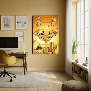 Quadro Decorativo Riqueza Prosperidade e Sucesso - 70x50cm - Cor: Moldura Preta