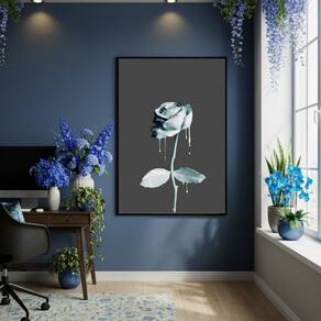 Quadro Decorativo Rosa Azul Escorrendo 70x50cm Mold Branca