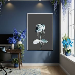 Quadro Decorativo Rosa Azul Escorrendo 70x50cm Mold Preta