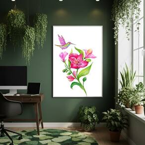 Quadro Decorativo Rosa Beija Flor 70x50cm Mold Preta