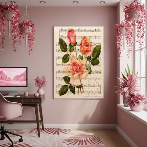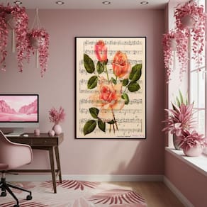 Quadro Decorativo Rosa Musical 70x50cm Mold Branca