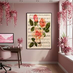 Quadro Decorativo Rosa Musical 70x50cm Mold Preta