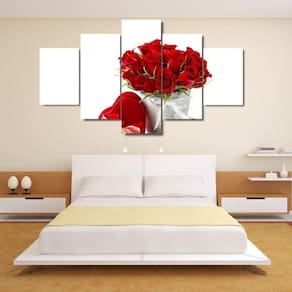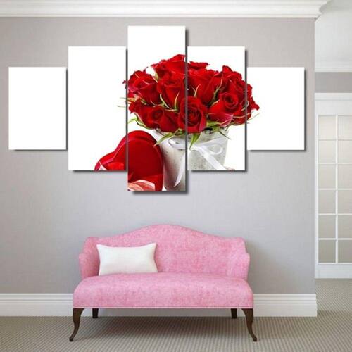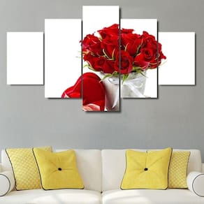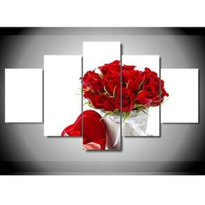 Quadro Decorativo Rosa Vermelha 5 partes 130x65 em teci