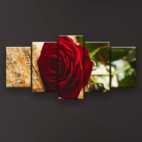 Quadro Decorativo Rosa Vermelha Música 129x61 5 Peças