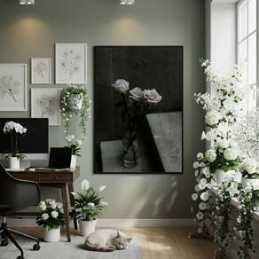 Quadro Decorativo Rosas Brancas 70x50cm Mold Branca