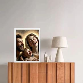 Quadro decorativo sagrada família sorridente 33x24cm Moldura: madeira branca Informações do produto tire todas as suas dúvidas no descritivo abaixo: decoração para quarto, sala, cozinha, escritório, área gourmet e muito mais. Chega de paredes vazias medidas - cada peça tem 33x24cm a4 . Material do papel - papel fotográfico brilhante de altíssima resolução acabamento - todos os quadros são acompanhados de uma película de acetato para proteção da imagem. - os quadros são embalados de forma segura com plástico bolha com camada dupla de acordo com o tamanho dos quadros. Garantia - garantia de 3 meses. Meu quadro chegou. Como posso fixá-lo Você precisa apenas de um martelo e um prego, pois os quadros já vão acompanhados de penduradores. Esta é a forma mais indicada. Caso prefira, você pode utilizar uma fita dupla face neste caso, sugerimos de alta qualidade para evitar que descole e seu quadro caia . Como posso limpar meu quadro A limpeza é feita como um móvel comum da sua casa. Apenas um pano seco ou espanador são suficientes para tal