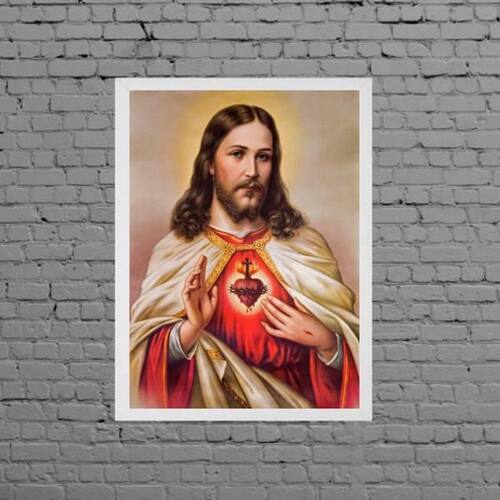 Quadro Decorativo Sagrado Coração De Jesus 33X24Cm Moldura: madeira branca Informações do produto: decoração para quarto, sala, cozinha, escritório, área gourmet e muito mais. Chega de paredes vazias Medidas - cada peça tem 33x24cm a4 . Material do papel - papel fotográfico brilhante de altíssima resolução acabamento - todos os quadros são acompanhados de uma película de acetato para proteção da imagem. - moldura em madeira maciça na cor branca e pendurador móvel que pode ser retirado facilmente caso deseje fixar com fita dupla face. - os quadros são embalados de forma segura com plástico bolha com camada dupla de acordo com o tamanho dos quadros. - de 3 meses Meu quadro chegou. Como posso fixá-lo Você precisa apenas de um martelo e um prego, pois os quadros já vão acompanhados de penduradores. Esta é a forma mais indicada. Caso prefira, você pode utilizar uma fita dupla face neste caso, sugerimos de alta qualidade para evitar que descole e seu quadro caia . Como posso limpar meu quadro A limpeza é feita como um móvel comum da sua casa. Apenas um pano seco ou espanador são suficientes para tal