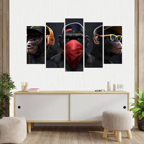 Quadro Decorativo Sala Quarto Escritorio 5 Peças Macaco N01 Indicação do produto Os quadros da obstine quadros são feitos pra decorar todos tipos de ambientes, podendo ser Utilizado em dormitórios, salas, escritórios, ambientes comerciais, halls de entradas, áreas de lazer, home-offices, etc. Nossos quadros além de sua qualidade, trazem harmonia, sofisticação e aconchego ou seja são peças versáteis que garantem uma decoração cheio de estilo. Especificações tecnicas/instalação Composição: total 05 quadros/peças. Tamanho total: 128cm comprimento x 60cm altura - sem contar o espaçamento Peças menores: 02 unidades - 22x30 cm Peças médias: 02 unidades - 22x50 cm Peça central: 01 unidade - 22x60 cm Espaçamento entre as peças: 1 a 2 cm Não acompanha vidro e nem moldura. - os quadro não precisa de moldura, pronto para pendurar na parede. - são feitos em adesivos de alta qualidade em impressão. -colado em madeira em mdf de 6mm. - não é necessário furar a parede para instalação, pois, enviamos fitas duplas faces com grande poder adesivo para melhor instalação. - é necessário na hora da instalação posicionar o quadro em 01 a 02 cm de largura entre eles para melhor qualidade de visualização. Limpeza / manutenção Para limpeza, utilize apenas um pano umedecido com água sem produtos químicos para garantir uma durabilidade maior. Impressão / acabamento Nossos quadros são impressos em vinil fosco, aplicado em mdf com espessura de 6mm. Desta forma terá um produto de alta durabilidade e também resistência a umidade. Não necessita de moldura, pois o acabamento das bordas/laterais é feito com a própria imagem impressa, dando visão realista e de profundidade do produto. / embalagem - 30 dias contras defeitos de fabricação não garantimos o mau uso do produto - embalagem segura para que receba seu produto em perfeito estado. - de produto de qualidade - vem pronto para pendurar Marca: Obstine Quadros