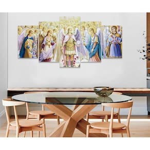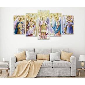 Quadro Decorativo Sala Quarto Escritório Conselho Arcanjos Os quadros decorativos são uma tendência e excelente ideia para quem desejar realmente mudar o visual do seu ambiente, deixando ele com a sua cara. São Utilizados para decorar vários ambientes seja um comércio, sua sala, quarto, área de lazer ou escritório, são lindos, leves e fáceis de instalar. Também pode quebrar aquele galho tampando aquelas pequenas imperfeições indesejadas da parede, com um toque super elegante. Decorar o seu ambiente é sempre um momento muito especial. Características do Produto: Tamanho total: 130cm comprimento X 63cm altura Peças menores: 25x40 cm | Peças médias: 25x51 cm | Peça central: 25x63 cm Espaçamento entre as peças: 1 cm a 2 cm Espessura do produto - 2 CM Quadro pronto para pendurar no local desejado. Material e Acabamentos: Tela em Tecido com impressão digital ecológica, de alta tecnologia, Atóxica e sem cheiro, proporcionando imagens de alta qualidade e durabilidade. Bordas com a extensão da própria imagem nas laterais, sendo uma tela painel. Tecido esticado no chassi de madeira e grampeado no verso, com suportes triangulares para a fixação. Um pouco mais sobre o Tecido O tecido é sintético fechado, sua flexibilidade evita que a impressão fique com aparência pigmentada, caso o material seja esticado. É muito utilizado em museus, exposições de arte, eventos, na identificação e principalmente Na decoração de ambientes. Como fixar no local: Fixação feita de forma tradicional, basta colocar dois parafusos ou dois pregos de acordo com os engates do quadro, Deixando espaçamento entre as peças de 1,5 CM ou até no máximo 2,5 CM. Limpeza após fixação: Para a limpeza basta apenas um espanador ou pano macio, sem conter elementos químicos. Objetos/móveis ilustrativos da imagens não inclusos somente o quadro. O Produto pode de ocorrer de ter uma leve diferença de tom de cor da que esta no monitor do seu computador. O Produto é produzido e postado em até 3 dias úteis após a confirmação do pagamento.