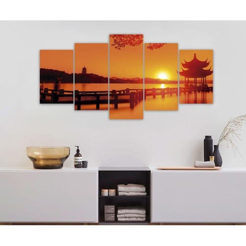 Quadro Decorativo Sala Quarto Escritório Sol Lago Ocidental