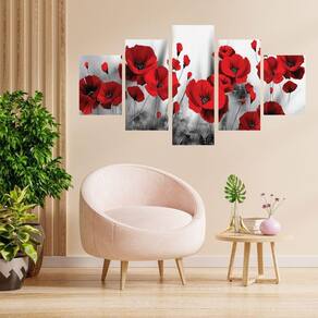Conteúdo da embalagem: 01 quadro flores vermelhas composto por 5 placas