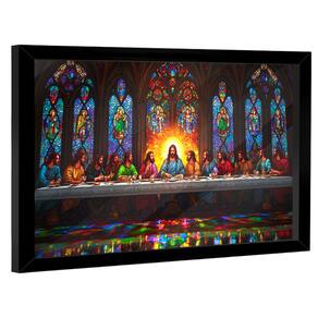Quadro Decorativo Santa Ceia Estilo Vitral Borda Infinita - 150x100cm -