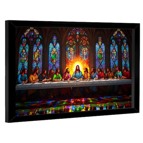 Quadro Decorativo Santa Ceia Estilo Vitral Moldura Preta - 150x100cm -