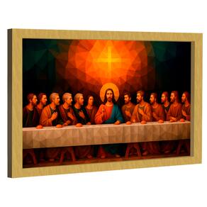 Quadro Decorativo Santa Ceia Geométrica Moldura Dourada - 60x40cm -