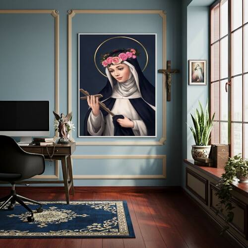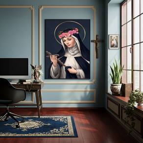 Quadro Decorativo Santa Rosa de Lima - 70x50cm - Cor: Moldura Branca