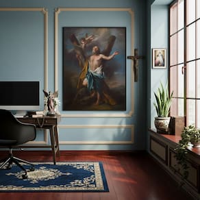 Quadro Decorativo Santo André Abraçando sua Cruz - 70x50cm - Cor: Moldura Branca