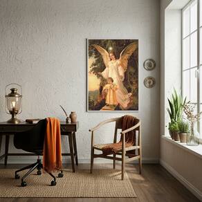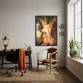 Quadro Decorativo Santo Anjo Da Guarda - 70x50cm - Cor: Moldura Branca