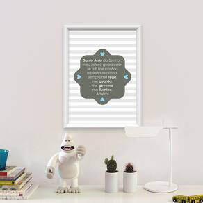 Quadro Decorativo Santo Anjo do Senhor Listrado Azul 34x44cm