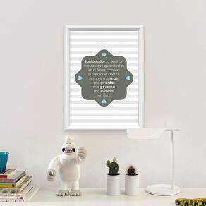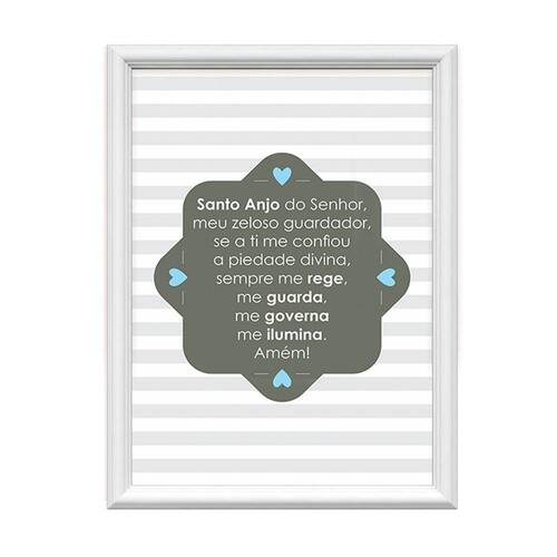 Quadro Decorativo Santo Anjo do Senhor Listrado Azul 34x44cm