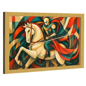 Quadro Decorativo São Jorge em Abstrato Moldura Preta - 118x78cm -