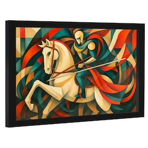 Quadro Decorativo São Jorge em Abstrato Moldura Preta e Vidro - 60x40cm -