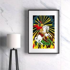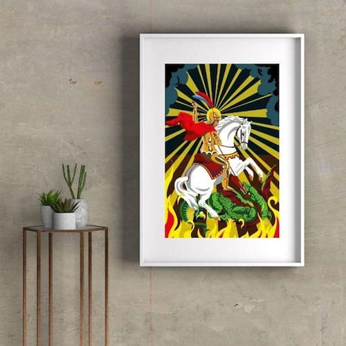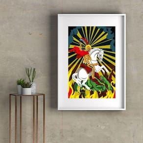 Quadro Decorativo São Jorge Fundo Colorido - 60X48Cm