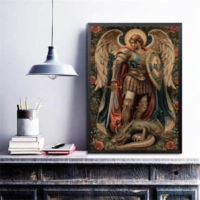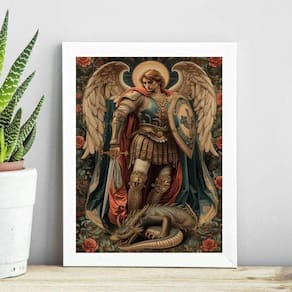 Quadro decorativo são miguel arcanjo - flores 33x24cm - com vidro