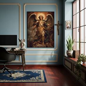 Quadro Decorativo São Miguel Arcanjo Guerreiro - 70x50cm - Cor: Moldura Preta